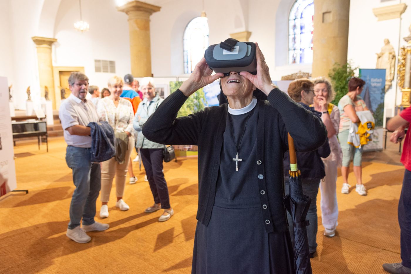 Bei der Ausstellung in der Ehemaligen Kirche kam auch eine Virtual-Reality-Brille zum Einsatz. Foto: Rupert Wöhrmann