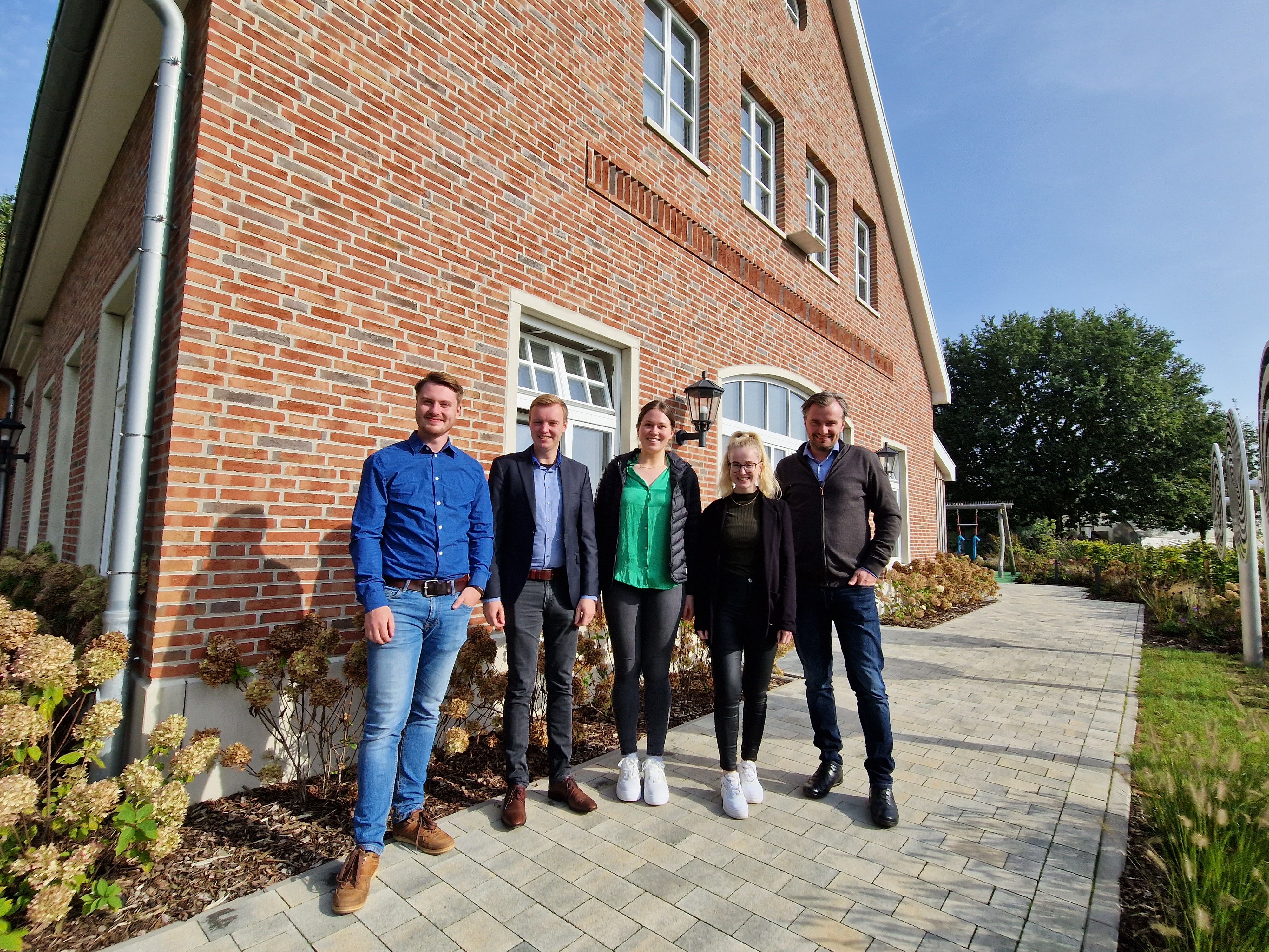Berater Karsten Perkuhn (2.v.l.) nahm mit seinen Kolleg:innen (v.l.) Nils Schnieders (REM Nördliches Osnabrücker Land), Lenja Noetzel (REM Wittlager Land), Christina Götz (REM Südliches Osnabrücker Land) und Berater Michael Ripperda an dem Netzwerktreffen teil. Foto: pro-t-in GmbH
