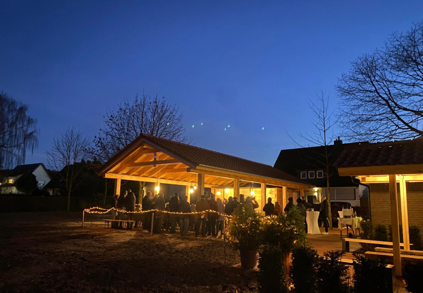Belm-Icker hat einen neuen zentralen Begegnungsort: Auf der Pfarrwiese ist jetzt der lang erwartete Pavillon eröffnet worden.