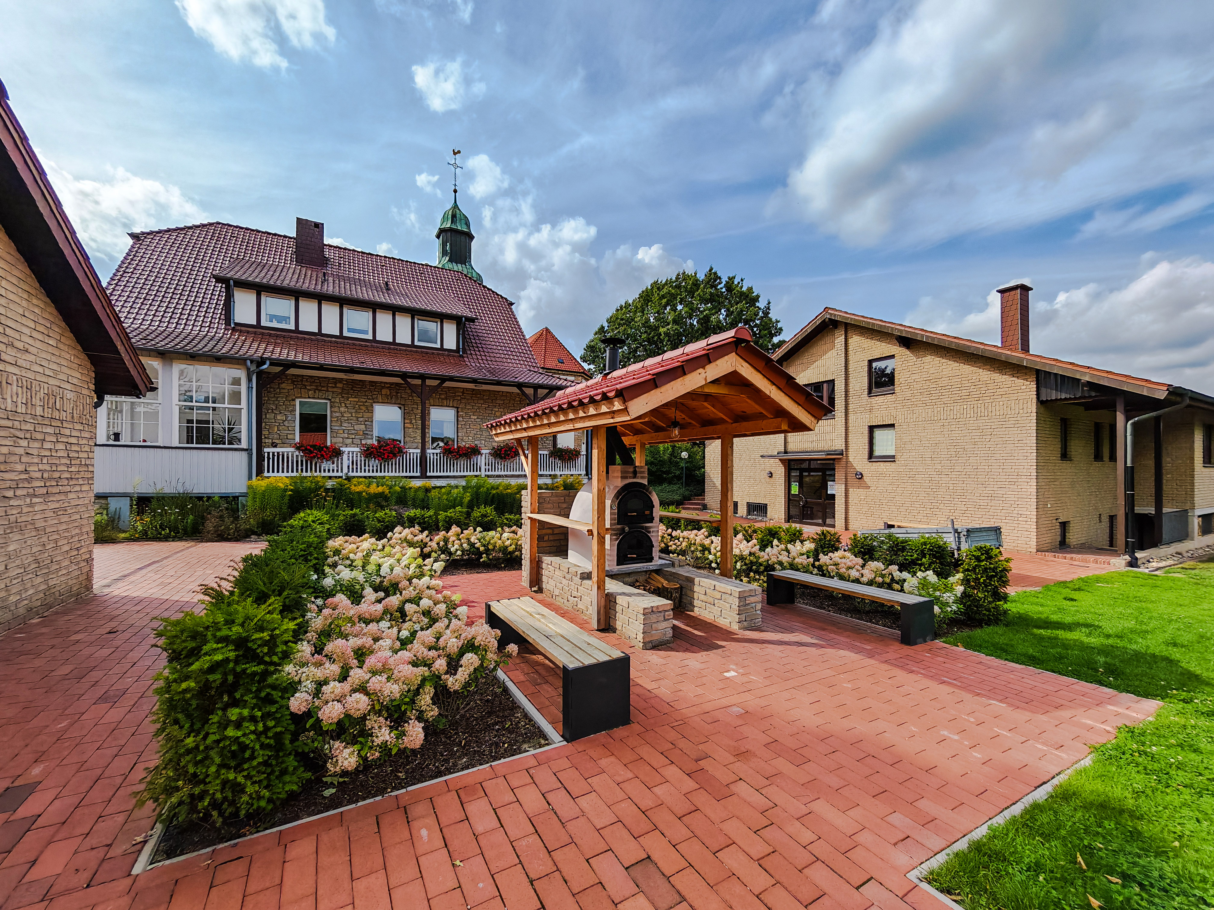 Jung und Alt, Alteingesessene und Zugezogene, Bekannte und Geflüchtete können jetzt hier zusammenfinden – beim Boulen, Grillen, im gemeinsamen Kräutergarten oder einfach zum Gespräch. So sollen neue Kontakte entstehen und die Gemeinschaft insgesamt gestärkt werden. Der Zugang ist barrierefrei, der Pavillon bietet gleichermaßen Schutz vor Sonne und Regen.