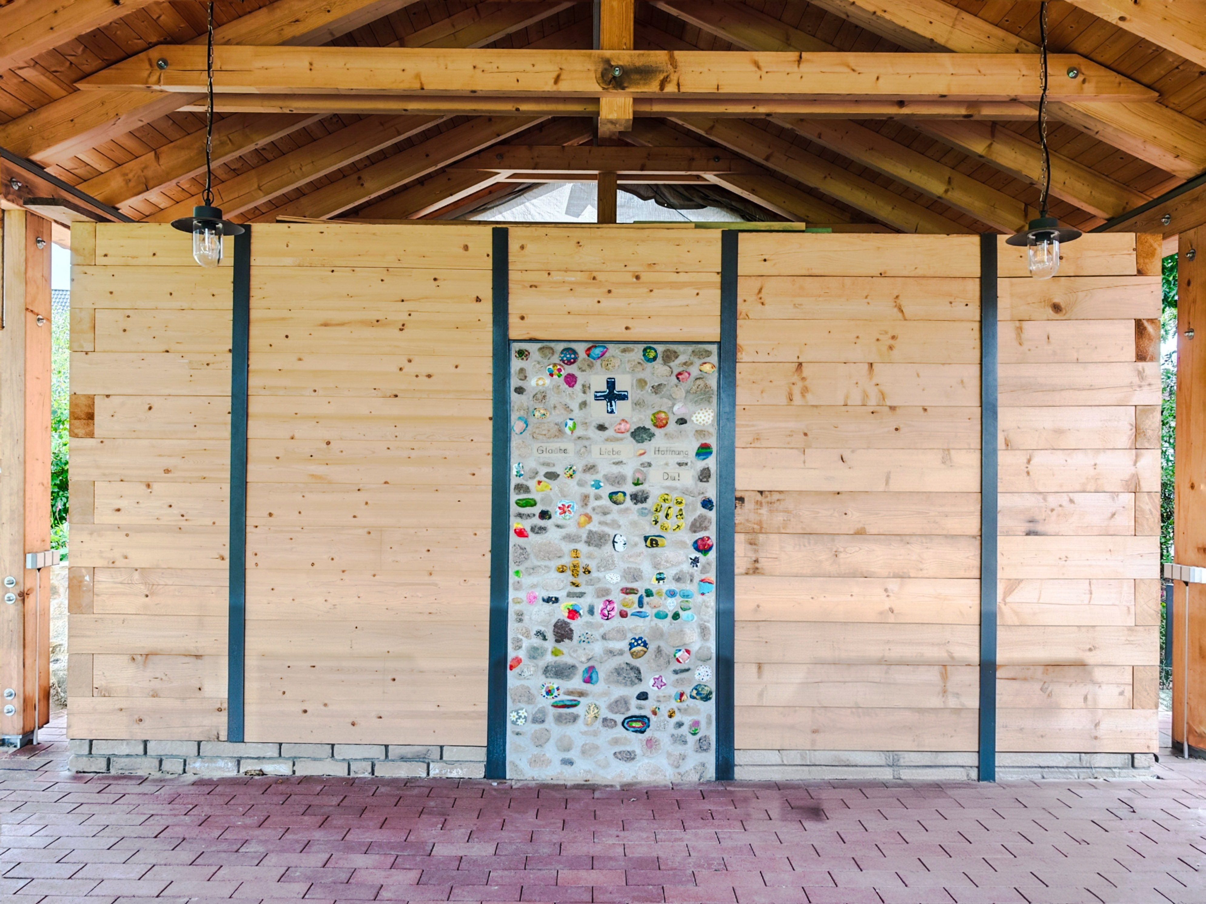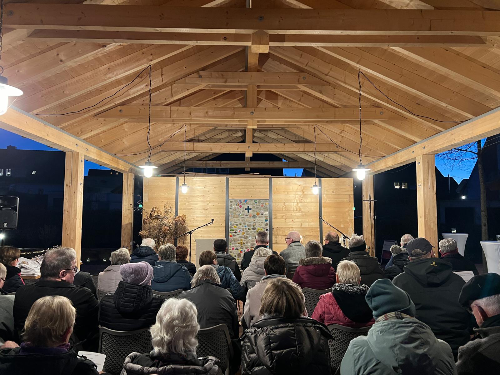 Mit einem multifunktional nutzbaren "Raum der Begegnung" auf der Pfarrwiese ist nun eine interaktive, lebendige und generationenübergreifende Begegnungszone entstanden. Dafür bekam der Förderverein Kirche mitten im Ort e.V. LEADER-Mittel für einen „Holz-Pavillon“ mit mobilen Sitzmöbeln, Abstell- und Technikraum.