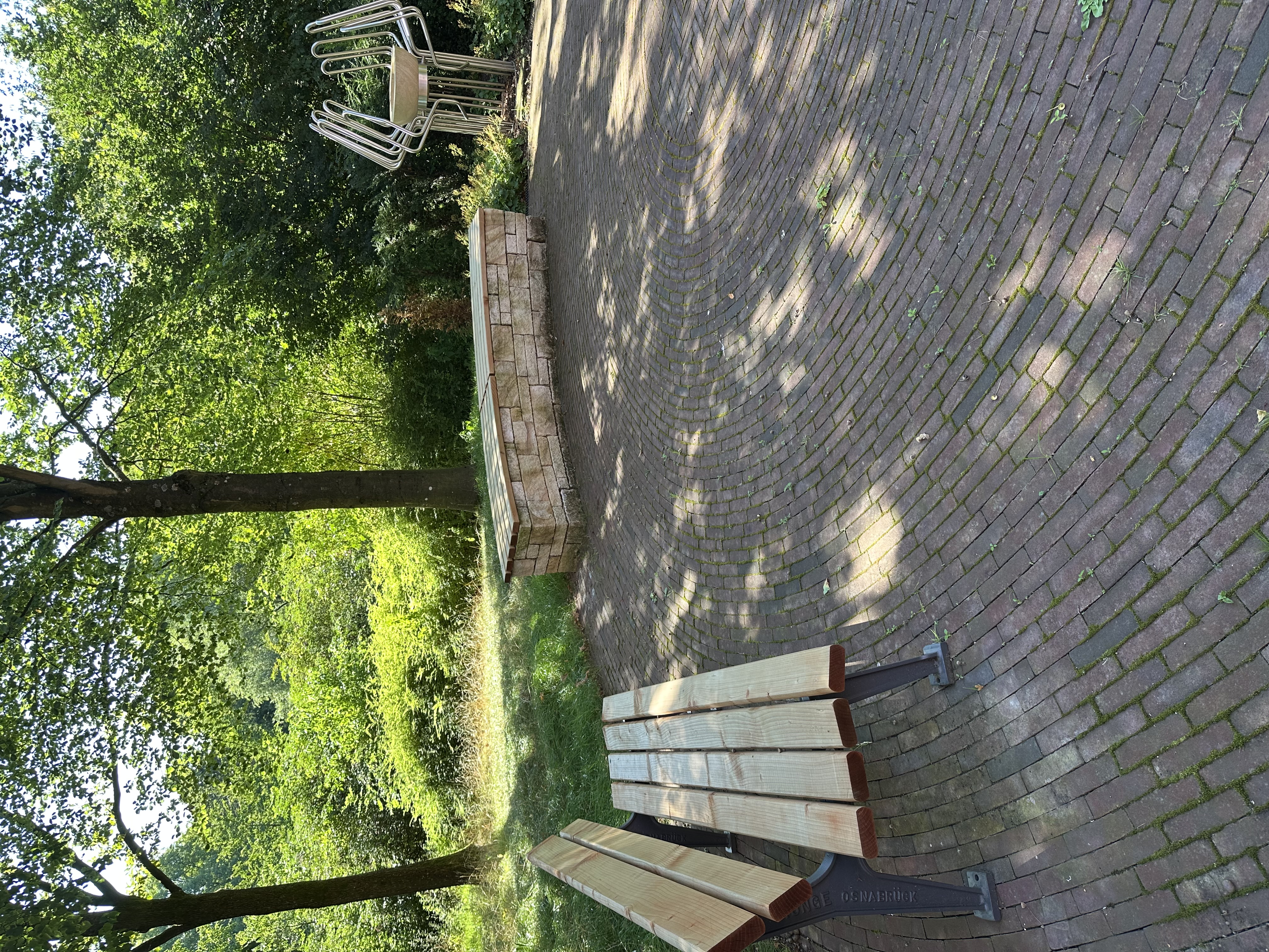 Für die Angehörigen ist der klassische Friedhof nicht nur ein Ort der Trauer, sondern immer auch ein Ort der Begegnung. Damit das Kolumbarium auch diese soziale Aufgabe wahrnehmen kann, wurde die Aufenthaltsqualität im Umfeld des Kirchengebäudes verbessert. Der Außenbereich ist nun ein Ort für Gespräche und Begegnungen. Gepflanzt wurde eine naturnahe Bepflanzung, die sich jahreszeitlich verändert und entwickelt und im Herbst auch Früchte zum Verzehr anbietet. Daneben stehen ansprechende Sitzmöglichkeiten, um auch älteren Besucher:innen gerecht zu werden. Daher wurden zwei Behindertenparkplätze geschaffen und die Gestaltung der Außenanlagen wurde barrierefrei umgesetzt. Die Außenanlagen verbinden 3 wesentliche Gebäude der Kirchengemeinde (Kolumbarium/Kirche, Pfarrhaus und Kindertagesstätte) miteinander und stellen so einen zentralen, generationenübergreifenden Treffpunkt in der Kirchengemeinde und der politischen Gemeinde dar. Da die Kindertagesstätte neben der Kirche die Parkplätze der Kolumbariumskirche mit nutzt, wurde ein Verbindungsweg vom Parkplatz zur Kindertagesstätte angelegt, so dass die Kinder nicht mehr über die Straße gehen müssen. Insgesam wurden zusätzliche Angebote im Sinne des Klimaschutzes durch Fahrradstellplätze sowie Impulse für einen Ort der Begegnung geschaffen.
