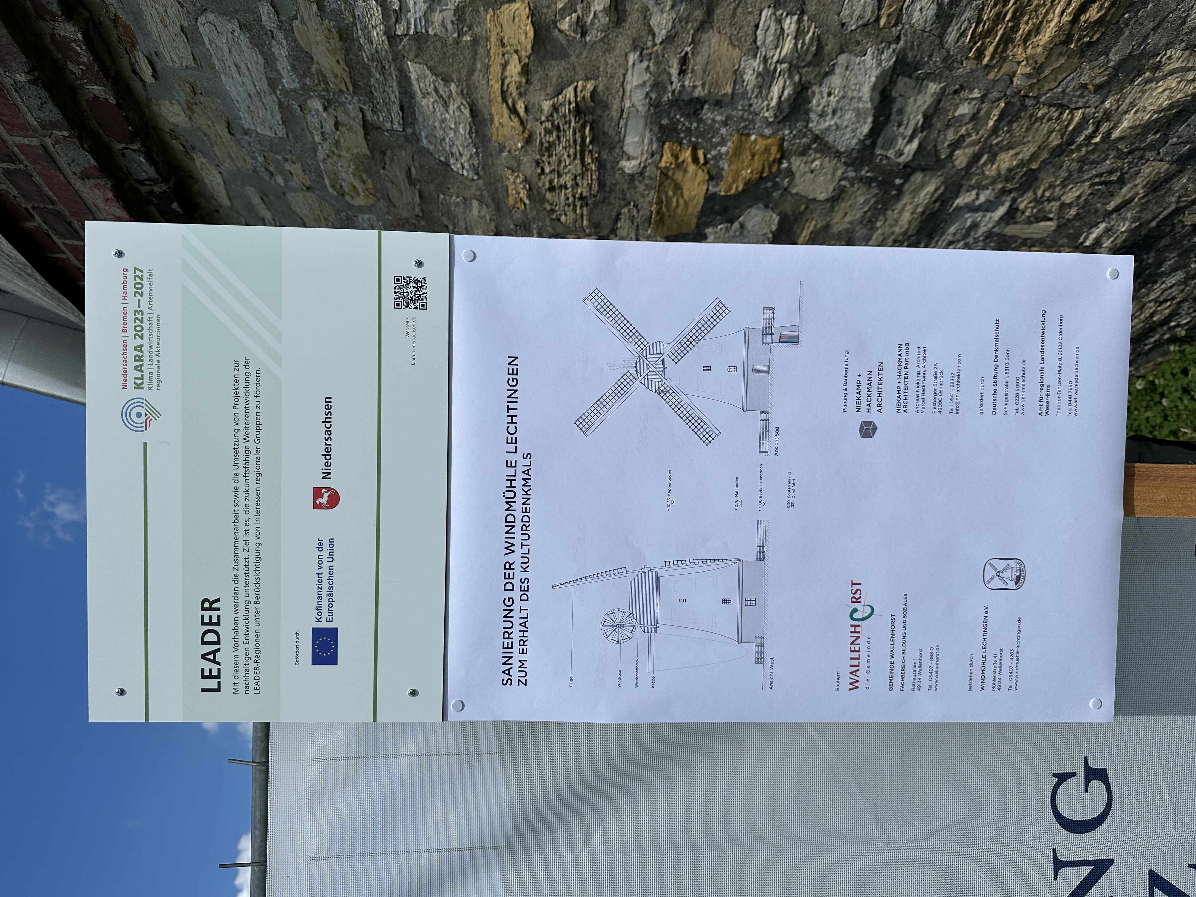 Mit Unterstützung der LEADER-Förderung plant die Gemeinde Wallenhorst gemeinsam mit dem Windmühle Lechtingen e.V. die denkmalgerechte Sanierung der Lechtinger Windmühle. Die Deutsche Stiftung Denkmalschutz tritt dabei als weiterer Fördergeldgeber auf.