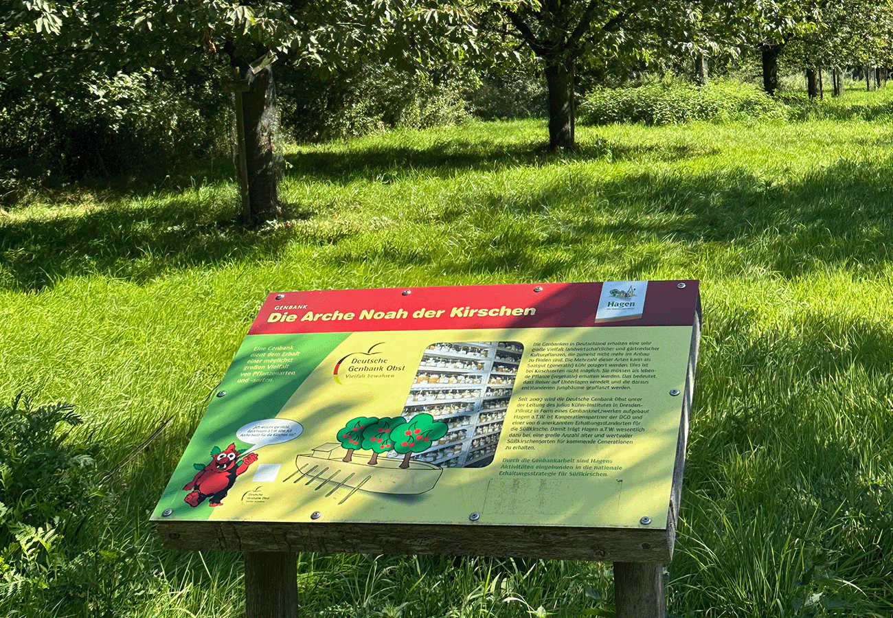 Beschilderung der Kirschbäume im Hagener Kirschlehrpfad