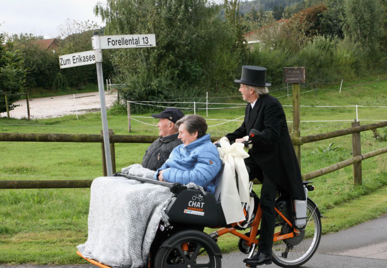 Für das Projekt in Hagen a.T.W. wurden zwei Rikschas gekauft werden. Sie sind an zwei Senioreneinrichtungen (St. Anna Stift und St. Joachim Haus) stationiert. Die Einrichtungen sind jeweils Startpunkte der Ausfahrten.
