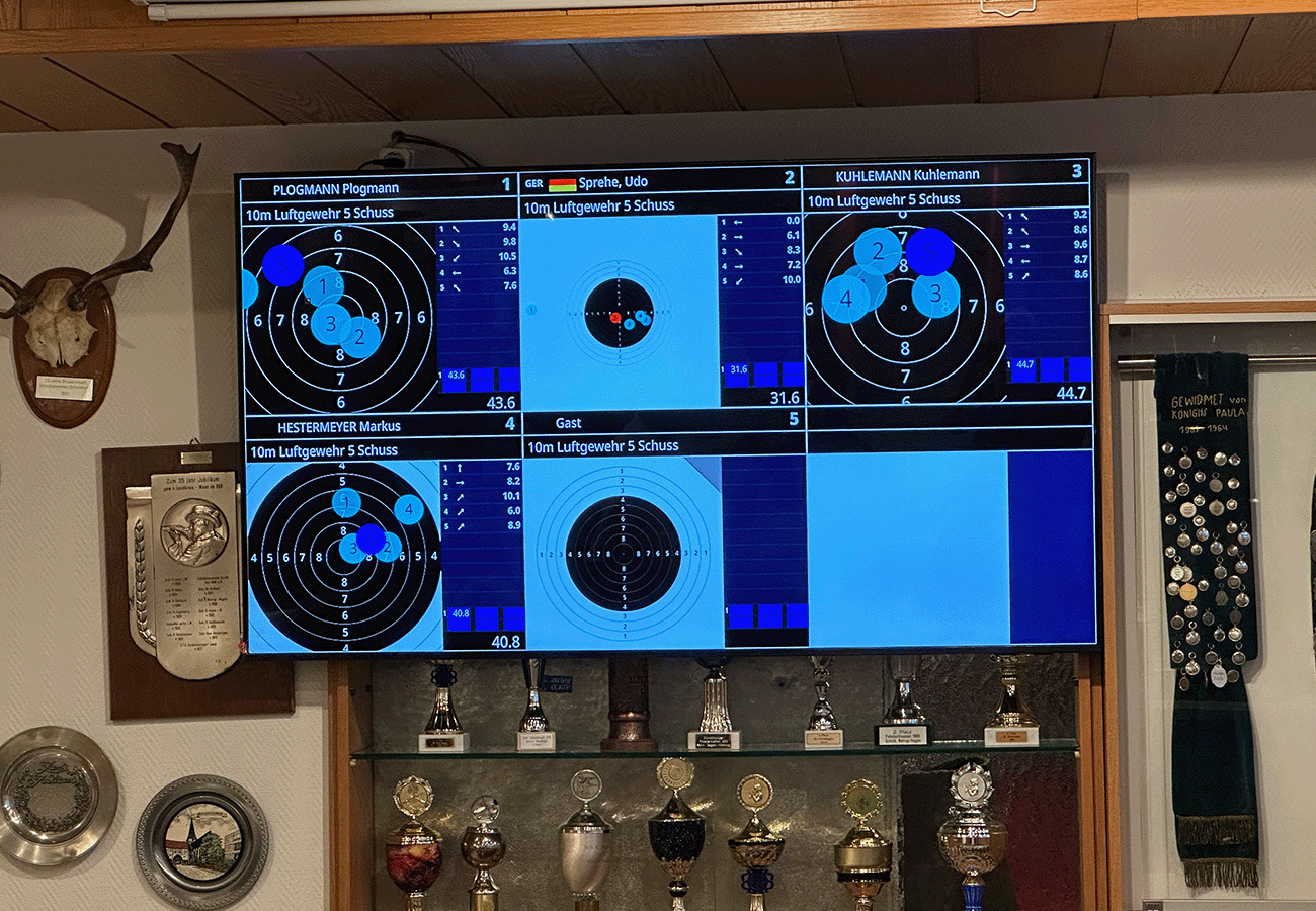 Die Treffer werden in Echtzeit digital auf Bildschirmen angezeigt. So können Schütz:innen und Zuschauer:innen sofort sehen, wo der Schuss getroffen hat. Das erleichtert sowohl das Training als auch die Durchführung von Wettkämpfen.